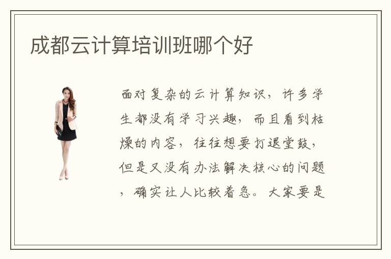 面对复杂的云计算知识,许多学生都没有学习兴趣,而且看到枯燥的内容,往往想要打退堂鼓,但是又没有办法解决核心的问题,确实让人比较着急。大家要是选择辅导班,应该看看成都云计算培训班哪个好,找到合适的课程,获得老师的指点,得到更多进展。云计算训练班学费贵吗,课程很丰富,每一个学校的收费都不一样,大家可以适当对比,结合现状进行考虑。有些学生觉得内容很复杂,学习要求比较高,会非常被动,不知道怎么掌握这些课程。但是老师会深入浅出,帮同学解答这些内容。云计算工程师的薪资往往非常高,一般情况下,一个月就能拿到1万到3万的待遇,如果是高阶的云计算工程师,待遇还会适当提高,所以大家要多积累,了解行业的发展趋势,掌握重要技能。