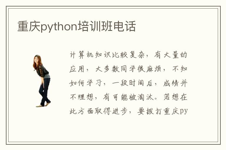 计算机知识比较复杂,有大量的应用,大多数同学很麻烦,不知如何学习,一段时间后,成绩并不理想,有可能被淘汰。若想在此方面取得进步,要拨打重庆python培训班电话,请教辅导机构,在老师指导下积累经验,关注行情趋势,找到学习方法,从而得到更多的进步。python课外辅导班费用高吗,一般辅导班的课程收费并不算高,因为部分基础课程的费用大概在3500~7500元。有的同学对自身要求更高,选择比较出名的学校,这些学校的教学环境,配套设施,教学方式,都有不错的优势,因此收费会更高。但大家在挑选学校或者课程时,要重视自身的需要,不能盲目跟风。python大概要学多久,一般情况下,要根据个人的能力以及学习需要判断,如果没有经验,就应该准备更多时间。
