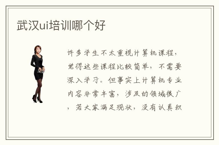 许多学生不太重视计算机课程,觉得这些课程比较简单,不需要深入学习。但事实上计算机专业内容非常丰富,涉及的领域很广,若大家满足现状,没有认真积累,可能会被同行淘汰。由于大家不太知道武汉ui培训哪个好,刚选的时候很被动,这时主要分析一下各种学校的口碑和教学方法。ui辅导学校怎么挑选,要挑选辅导班,应该分析一下各种学校的教学能力,培训项目,教学重点等。有些学校确实很厉害,培训速度很高,项目也非常鲜明,同学很快就能找到重点,然后快速理解前沿知识。刚开始学习的时候,可能会发现问题很多,而且学习进度很慢,容易影响成绩,但老师及时作出调整,帮助同学解决问题。ui报班好不好,报名辅导班,学习UI设计的课程其实有较好的帮助,会让学员们的知识体系更完整。