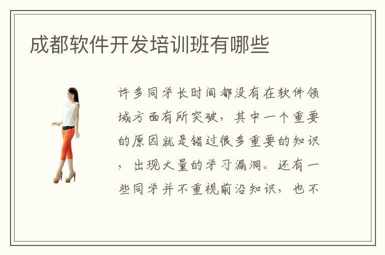 许多同学长时间都没有在软件领域方面有所突破,其中一个重要的原因就是错过很多重要的知识,出现大量的学习漏洞。还有一些同学并不重视前沿知识,也不关注行业发展,因此学习状态不好,效果也不是特别棒。面对这些问题,大家可对比成都软件开发培训软件开发培训班有哪些,参考辅导机构,完成许多训练,从而得到更多进展。软件开发课外培训班如何挑选,选择教育机构,应该着重关注教学质量,培训时间,师资力量等等因素,有的学校对老师非常严格,有很完整的训练课程,效率相当高,同学短期内就能有收获。不过也有一些学校的专业水平比较低,培训软件开发课程的思路不够清晰,同学收获会更少。但需要注意,无论选择哪些软件开发的辅导班,都要有自己的思考,整理知识的框架。
