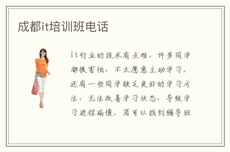 it行业的技术有点难,许多同学都很害怕,不太愿意主动学习。还有一些同学缺乏良好的学习方法,无法改善学习状态,导致学习进程减慢。若可以找到辅导班,往往能调整学习节奏,得到更多新进步。但是不确定哪个好时,可拨打成都it培训班电话,选择合适的课程。it辅导机构有必要报班吗,多数学生报班之后,都有很多提高,包括学习效率大大提升,学习成绩越来越好,信心也更加充足。刚开始进步,很多同学对理论知识和应用课程理解不够充分,但报名之后同学的学习速度会更快,看到理想的改善后,往往也会有更充足的动力。it技术员的发展潜力非常大,大家要以掌握很多技术,实现职业目标,取得很高的待遇。但是在学习的时候,要有谨慎的态度,不要随便应付。