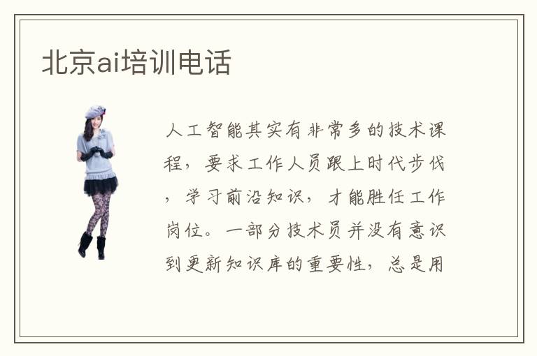 人工智能其实有非常多的技术课程,要求工作人员跟上时代步伐,学习前沿知识,才能胜任工作岗位。一部分技术员并没有意识到更新知识库的重要性,总是用以前所学的知识解决现有的问题,往往会非常吃力,还会力不从心。为了在人工智能工作岗位中有更好的表现,大家要重视训练,学习更多新知识。如果有必要,可考虑报名AI专业机构,由老师进行详细指导。北京ai培训电话,其实许多的ai培训机构都有严格要求,每一位同学报名之后,可以跟随老师步伐,学习基础的计算机知识和前沿的机器学习,自然语言处理,专家系统等等内容。ai技术员的月薪大概在2万到5万,在刚起步时,不要过于重视薪资,应该要着重提升自己的专业实力。当能力更强工作、优势更突出时,薪资会快速上升。