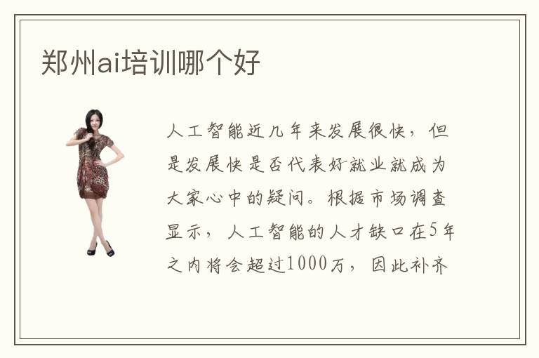 人工智能近几年来发展很快,但是发展快是否代表好就业就成为大家心中的疑问。根据市场调查显示,人工智能的人才缺口在5年之内将会超过1000万,因此补齐人才短板是当今的重中之重。倘若大家有不错的技术实力,有能力完成人工智能的开发项目,找工作会很轻松。郑州ai培训哪个好,有的AI辅导机构非常了解同学的技术能力和逻辑思维能力,安排一些核心训练项目主要是为了锻炼大家的应变能力。因为该行业发展快,每年都有新技术,若大家不随机应变,都有可能被淘汰。ai培训有什么优势,主要体现在综合实力,技术,品牌等。部分AI辅导班的综合实力非常强,拥有非常高的人气,口碑也不错,大家认可度高。ai入门教程自学可以吗,自学人工智能入门教程也有比较好的帮助,但是效率可能没有老师直接引导的那么快。
