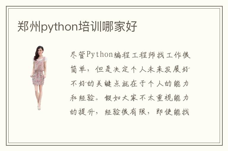 尽管Python编程工程师找工作很简单,但是决定个人未来发展好不好的关键点就在于个人的能力和经验。假如大家不太重视能力的提升,经验很有限,即使能找到工作,但晋升空间非常有限。而现在有很多方式可以迅速掌握Python编程内容,并且将其用于人工智能,云计算,软件开发等领域。郑州python培训python培训哪家好,因为同学标准不同,哪个好其实很难判断。python培训可靠吗,如果想学习一些就业课程或者兴趣引导课,都可以找这些Python培训机构。因为各个地区的辅导班也在拥有强大的教学能力,老师是该领域的资深达人,能为很多的同学带来实实在在的建议。python有什么课程,主要是一些编程语言的语法,软件开发,高级编程,大数据分析,爬虫训练等,对技术人员的工作有举足轻重的作用。