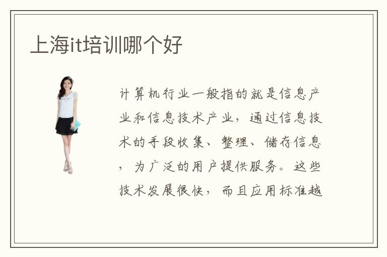计算机行业一般指的就是信息产业和信息技术产业,通过信息技术的手段收集、整理、储存信息,为广泛的用户提供服务。这些技术发展很快,而且应用标准越来越高,有的人刚刚毕业,没有经过严谨的训练,花很长时间也找不到合适的工作。上海IT培训哪个好,其实要想快速找到理想的工作,可以选择报班。通常情况下,师资力量雄厚的IT辅导班,都有详细的课程,老师也会认真对同学们负责。假如能力很差,技术不够扎实,可关注IT培训入门课程,老师和同学们有更多交流机会,按照同学的能力设置课程难度,确保同学得到进步。IT辅导收费标准高吗,多数辅导机构的课程费用都较为合理,比如简单的课程费用大概在4000元到8000元,而高阶课程大概要1万元到3万元,同学们可根据个人能力调整。