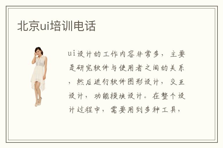 ui设计的工作内容非常多,主要是研究软件与使用者之间的关系,然后进行软件图形设计,交互设计,功能模块设计。在整个设计过程中,需要用到多种工具,也要进行多层检测,确保设计的合理性、美观性、可用性。北京ui培训电话,有的技术员能力有限,不太懂软件界面设计,缺乏美感,或者没有独特的构思,可以找到ui设计辅导班,强化个人专业实力。ui培训优势体现在注重学员们的基础和应用,收集工作当中的案例,为学生一一讲解。老师和同学交流更多,把同学现有问题解决,使得知识结构更为完善,工作能力更强。ui工程师的年薪大概在8万到30万之间,但其实这些只是估算,影响因素是公司的福利待遇以及学生自己的专业实力。假如刚刚起步,就不要只关注薪资,应当多提升工作能力。