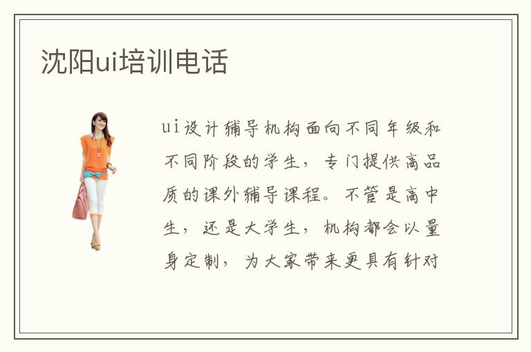 ui设计辅导机构面向不同年级和不同阶段的学生,专门提供高品质的课外辅导课程。不管是高中生,还是大学生,机构都会以量身定制,为大家带来更具有针对性的培训方案。另外,有的技术员想要拥有更大的发展舞台,因此很努力去提升业绩,这些也可报名专业机构,学习一些新技能,拥有更多技术优势。沈阳ui培训电话,ui设计机构很多,需要谨慎对比,了解学校的综合能力,培训口碑,但也可以顺便看一下教学环境以及培训重点。ui教学好吗,根据很多人的介绍,现在的另外辅导机构都有很好的教学效果,每年为社会输送成千上万的专业人才,所以大家在学习以后应该得到很多提升,ui工程师的任务是什么,ui工程师的任务就是全面支持平台建设,进行适当的网络推广,结合优质的界面效果,呈现更好的软件服务。