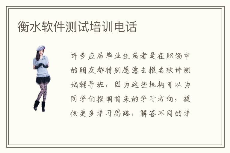 许多应届毕业生或者是在职场中的朋友都特别愿意去报名软件测试辅导班,因为这些机构可以为同学们指明将来的学习方向,提供更多学习思路,解答不同的学习难点。可能同学跟不上进度,或者对软件专业本身不感兴趣,容易产生懈怠情绪,但培训机构会负责把每一位学生教好,还能排解心理压力,让大家享受学习乐趣。当然市面上机构很多,同学们要提前联系衡水软件测试培训电话,找到正规的机构。软件测试课外辅导设施齐全吗,有些软件测试教学机构确实会准备各种专业设施,提升应用课程比例,让大家在理解理论的同时获得更多上机操作的机会。软件测试1对1的课程有比较高的价值,其实老师非常明白,同学长时间没有进展,并不是缺乏学习资料,而是没有方向,所以会强调目标的制定。