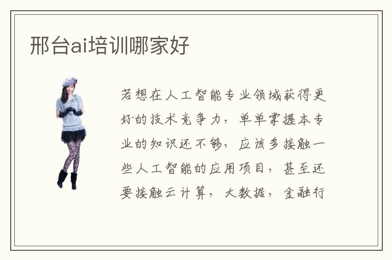 若想在人工智能专业领域获得更好的技术竞争力,单单掌握本专业的知识还不够,应该多接触一些人工智能的应用项目,甚至还要接触云计算,大数据,金融行业,服务行业等。其实人工智能已经成为时代的发展趋势,也是核心技术,在未来几十年中都有重要意义,人才缺口大,需大家多花心思。邢台ai培训哪家好,要根据个人需求确定。首先许多AI机构会提供个性化辅导,制定1对1的教学方案,与大家的学习进度相匹配。同学在某些专业领域比较擅长,老师便会加快步伐或者加深学习难度。ai教学老师的水平高吗,很多老师在本专业领域都有很成熟的业务能力,工作经验丰富,也总结出许多实用的学习方法与技巧,可以减少许多的弯路。ai前途非常好,就业机会多,人才缺口大。
