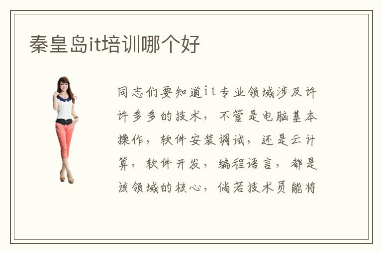 同志们要知道it专业领域涉及许许多多的技术,不管是电脑基本操作,软件安装调试,还是云计算,软件开发,编程语言,都是该领域的核心,倘若技术员能将这些不同的科目关联起来形成一个完整的结构体系,整理成知识框架,将来学习其他IT技术内容时,往往会更加得心应手。秦皇岛it培训哪个好,有些教育集团立足于国内的大城市,辐射到全国范围内的二三线城市,与软件企业和it企业的应聘要求相结合,自主研发高水平的人才培养体系,专门推出实战型课程,使更多学员拥有优势,取得更多突破。it辅导水平如何,不少it辅导班自从创业以来,凭借前沿的办学理念,培养出成千上万名专业的实用型人才。it技术员的待遇如何,it技术员的待遇每年都可以达到15万到30万。