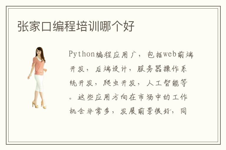 Python编程应用广,包括web前端开发,后端设计,服务器操作系统开发,爬虫开发,人工智能等。这些应用方向在市场中的工作机会非常多,发展前景很好,同学们可以根据感兴趣的领域和自身的学习条件,找到合适的方向,着重进行研究,从而获得更多进步。张家口编程培训哪个好,其实这些问题真的好难回答,因为机构的优势和侧重点不同就可以直接影响学员的判断。有些机构考察的是同学的基础,开设大量的操作课程,花很多的时间提升同学的编程语言应用能力。另外,在训练期间,同学经过老师指点,还可以改善自己的逻辑思维和学习能力。编程指导效率如何,许多指导机构都有高效率的课程,尤其是编程网络辅导,没有地点与时间约束,同学在家中也能听讲,真的很方便。