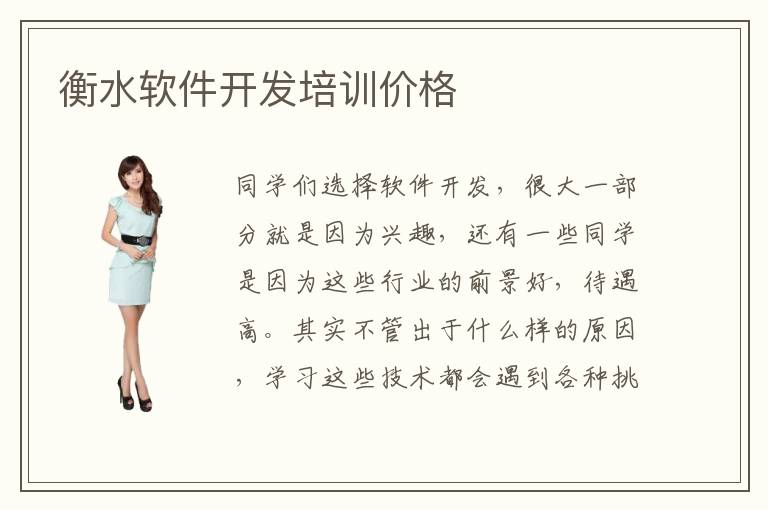 同学们选择软件开发,很大一部分就是因为兴趣,还有一些同学是因为这些行业的前景好,待遇高。其实不管出于什么样的原因,学习这些技术都会遇到各种挑战,但大家可以将挑战转化的动力,对这些专业保持充足的信心,不断进行研究,相信很快能实现突破。衡水软件开发培训价格一般在6000~39000,其实跨度非常大,因为同学标准不同,学习的项目不一样,学费也有变化。软件开发课外辅导实力如何,有些课外辅导班专门分析前沿知识,不仅能巩固学员的基础结构,讲解基础概念,还会带来大量实用的软件开发案例和应用项目。此外,机构一般会推出软件开发1对1的课程,不断完善课程体系,更利于同学们理解,提升得更快,对学习有高要求的同学也比较愿意选择这样的课程。