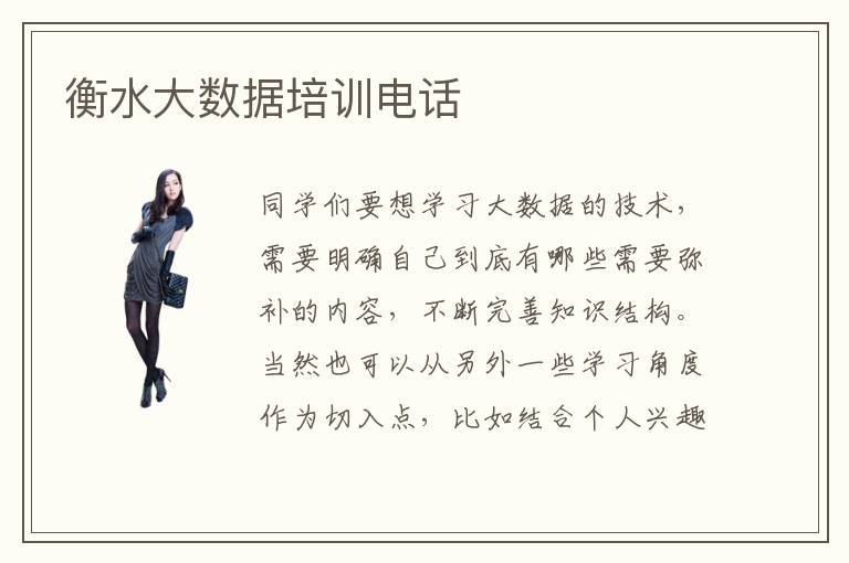 同学们要想学习大数据的技术,需要明确自己到底有哪些需要弥补的内容,不断完善知识结构。当然也可以从另外一些学习角度作为切入点,比如结合个人兴趣爱好和擅长领域挑选合适的课程,当学习这一类课程有一定收获的时候,个人的学习欲望也会迅速调动起来。如果对大数据专业的技术理解不够透彻,或想学习更深入一点,都可以看看衡水大数据培训电话,挑选一些高水平的机构与课程。大数据课外辅导好不好,课外辅导一般都有不错的质量,老师会培养同学的学习能力和应用能力,并且投入更多精力分析同学的弱点,找到弥补的方案。大数据课程要求高吗,大数据课程当然是比较高的标准,因为行业变化快,难度逐渐增大,人才竞争也尤为激烈,许多公司对技术人员的经验和技能十分看重。
