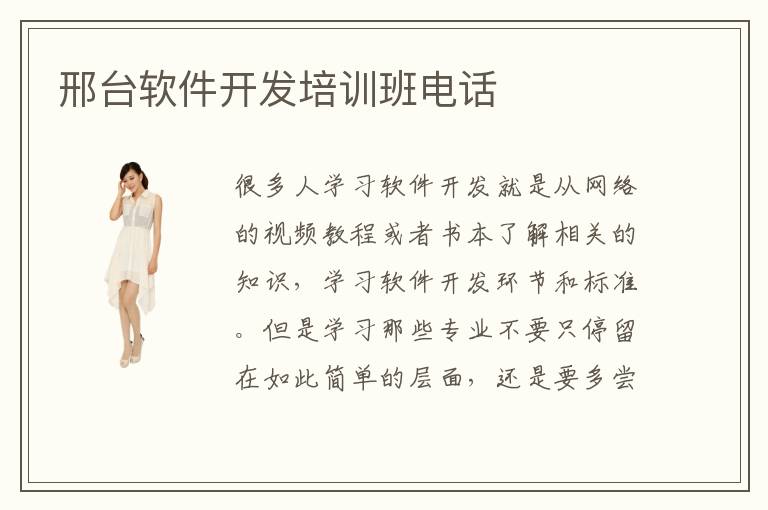 很多人学习软件开发就是从网络的视频教程或者书本了解相关的知识,学习软件开发环节和标准。但是学习那些专业不要只停留在如此简单的层面,还是要多尝试应用,把软件开发的理论和应用融入到具体的项目当中,适当考验一下自己,看看能不能达到标准。若学习成绩还达不到预期的标准,可联系邢台软件开发培训软件开发培训班电话,找到这些能力强的老师,一般这些机构出来的老师都是比较负责,全程提供监督,并且实时与同学交流,关注同学的掌握程度。软件开发教育机构可不可以信赖,很多软件开发教育机构都可以信赖,口碑不错,有10多年的办学历史,还拥有强大的教学资源和师资力量。另外,为了赶上时代步伐,机构也与时俱进,开展众多的软件开发在线指导课程,得到学员的认可。