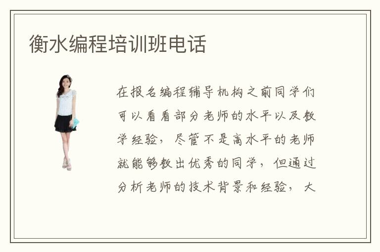 在报名编程辅导机构之前同学们可以看看部分老师的水平以及教学经验,尽管不是高水平的老师就能够教出优秀的同学,但通过分析老师的技术背景和经验,大家有对将来的老师有大概的了解,也能避开许多雷区。因为现在很多机构会推出线上试听课程,所以大家可以提前联系衡水编程培训班电话,尝试听一听这些课程,评估一下教学的质量。编程教学机构环境怎么样,很多培训机构为了让同学有更好的学习环境,会购买大量的设备,优化院校内的氛围,学员们可沉浸在其中。其实现在市面上的机构都会开展各种类型的课程,包括就业课程,兴趣引导课程,理论分析课,案例课程等,通过多种方式呈现。同学不妨确定好自己的学习需求,然后再适当报名,更快达到编程零基础入门的状态。