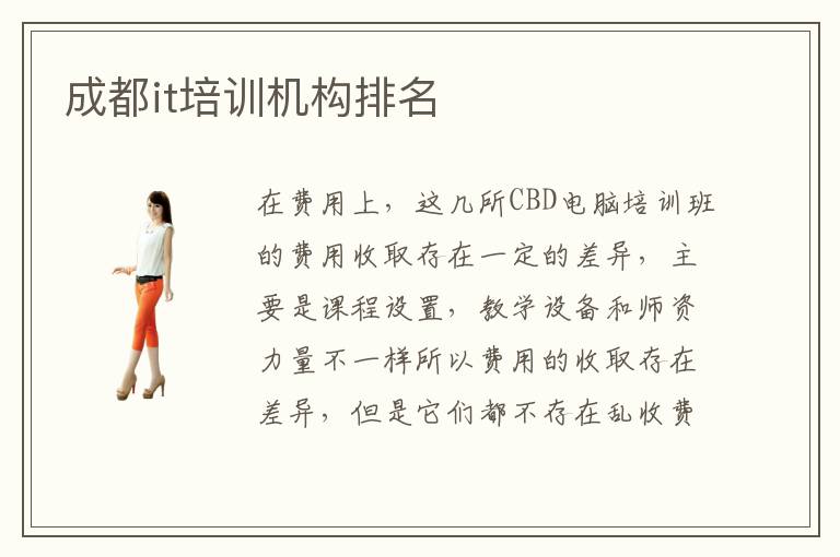 在费用上,这几所CBD电脑培训班的费用收取存在一定的差异,主要是课程设置,教学设备和师资力量不一样所以费用的收取存在差异,但是它们都不存在乱收费的行为;感兴趣的同学可以去官网或者打电话了解详情。殊不知,成都还是湖南省一个经济发展的中心城市,注重计算机专业的教育事业。it培训班有哪些,多数培训机构的教育方法都是比较先进的,更加注重实践,同学可以多分析这些培训班的优势及教学质量,然后再学习具体的课程项目。因此专业的it人才在it行业中,一直处于相对匮乏状态的。it培训优点在哪里,学习过程总是会让人厌倦,而且很多人不大确定哪些才是it核心课程,总是没有办法调动自己的积极性,有时候还会耗尽自己的精力。