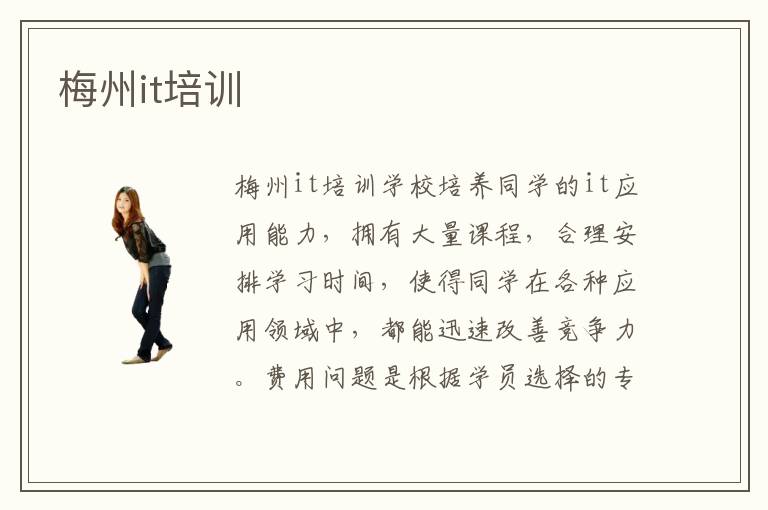 梅州it培训学校培养同学的it应用能力,拥有大量课程,合理安排学习时间,使得同学在各种应用领域中,都能迅速改善竞争力。费用问题是根据学员选择的专业来决定的(学费都不是很高的),专业不同,费用当然也是不一样的。梅州it培训机构哪个好。要是没有任何方向,不妨确定梅州it培训机构哪家好,找到辅导班,反复加以练习。如果不到专业的电脑学校学习,你学习起电脑技术会非常的吃力。其实大家不必灰心,还有其他突破的方法,比如选择专业的辅导机构,由老师安排技术课程,经过几个月的强化训练,就会有比较大的进步。所以大家要了解各种竞争的方法和竞争的技能提升,了解专业的先进的知识内容,以后也许可以得到更好的竞争优势。结业后还可以拿到北京课程证书和奥斯卡证书,是国度劳动和社会保证部职业妙技判定中心承认的证书。