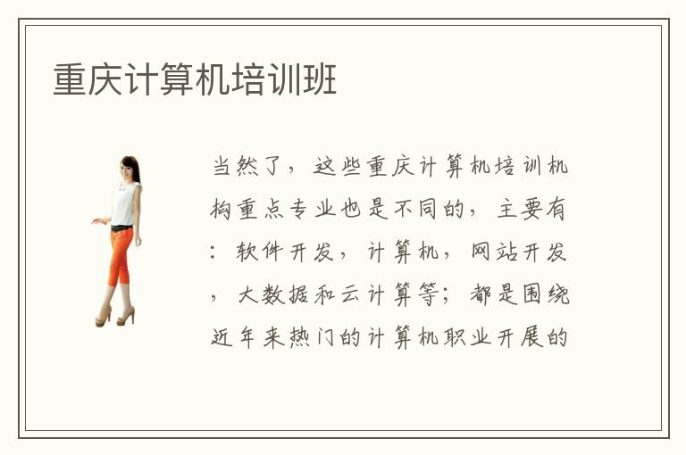 当然了,这些重庆计算机培训计算机培训机构重点专业也是不同的,主要有:软件开发,计算机,网站开发,大数据和云计算等;都是围绕近年来热门的计算机职业开展的,能让毕业的学生更快的适应当下的社会,早日在职场站稳脚跟。北大青鸟这些年随着计算机市场的发展也在不断开拓,在各地开始创办分校区,自然是不会放过重庆这个高质量教学地区了,也就有了重庆北大青鸟计算机培训学校的成立。重庆计算机培训学校聘用专门的教学教师,以人才培训为主。那么,重庆北大青鸟计算机培训学校有哪些课程供学员们选择呢。计算机学校有必要吗,计算机学校还是很有必要的,因为老师对同学的要求都比较严格,分析指导方向,同学就能按部就班,掌握专业技术和重点内容,解决计算机专业实践的难题,改善应用的成绩,从而拥有更多工作表现。
