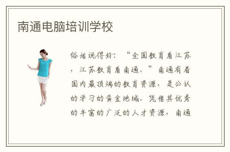 俗话说得好:“全国教育看江苏,江苏教育看南通。”南通有着国内最顶端的教育资源,是公认的学习的黄金地域。凭借其优秀的丰富的广泛的人才资源,南通的教育事业也是蒸蒸日上。南通电脑培训学校的建立为不少学子提供了理论和实践上的支持,南通电脑培训学校优势在哪里?南通电脑培训学校教学水平高吗?南通电脑培训机构教学优势明显,教学效果瞩目。