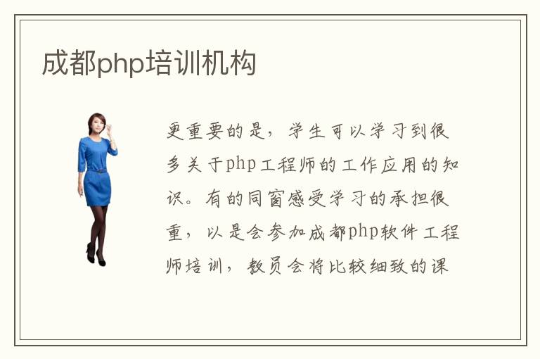 更重要的是,学生可以学习到很多关于php工程师的工作应用的知识。有的同窗感受学习的承担很重,以是会参加成都php软件工程师培训,教员会将比较细致的课程和练习项眼带给人人,使得每位同窗的挑升更加明显。达内教育php培训是一家成立于北京的专业php培训机构,十多年专注于php教育,秉承着认认真真做教育的理念,培养了大批高端php程序员。所以大家要利用好这部分的课程,提高学习的质量和成果。但也有部分机构可能没有很好的水准,水平很一般,教学质量也比较普通,所以要及时应对。计算机编程越来越多,技术越来越复杂,有些同学很想掌握,但自己没有经验,也没有足够的自学能力,学习困惑越来越多,成绩也不够理想。而且老是不定期进行严格检测,了解同学的掌握进度和吸收效果,假如学生对某个知识点或者某个学习阶段的学习效果不好,老师会继续严加管教,帮助同学理解重要的php编程内容。
