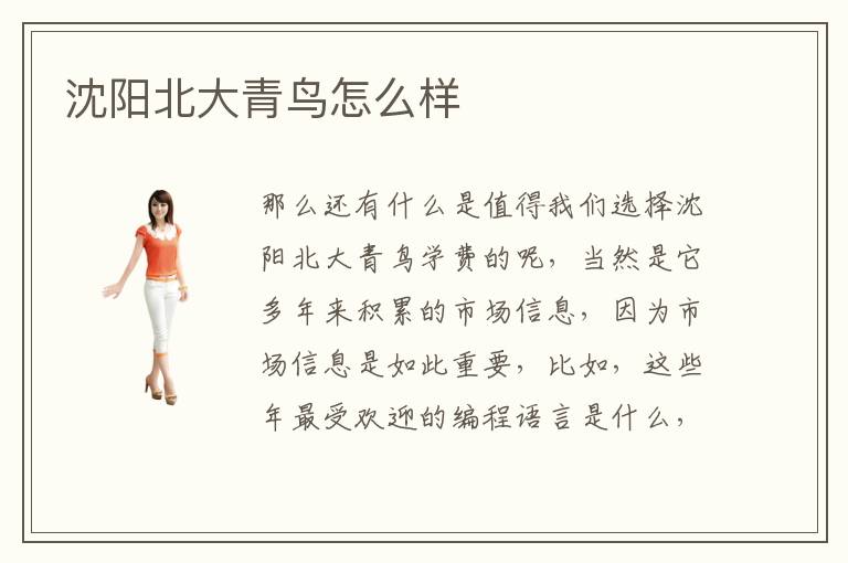 那么还有什么是值得我们选择沈阳北大青鸟北大青鸟学费的呢,当然是它多年来积累的市场信息,因为市场信息是如此重要,比如,这些年最受欢迎的编程语言是什么,北大青鸟还是pthon。沈阳北大青鸟怎么样资历和教学资源如何。其实在学习中如果没有老师的引导,学习的障碍可能会比较多,会遇到很多难题,无法提高个人的实力。由此,亦吸引了很多有梦想的人们前来问津,当然,学费问题必是所有人都关注的。现在这个世界,科学技术很发达,每个人都想学习IT技术,可是有很多人就是因为没有选择好一个好的学校,就没有学到真正的知识,而导致没有找到一份好的工作。北大青鸟学校在各地几乎都有着自己的校区,为方便您的查找,请您准确定位自己的位置,我们在地区的原则上,将各个校区分类,进行标注详细的地理位置,同时附注了各个校区的资源以及环境等情况,希望您能够选择一所距离自己最近并且各方面条件都相对比较适合自己的学校。
