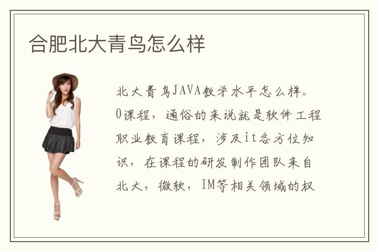 北大青鸟JAVA教学水平怎么样。0课程,通俗的来说就是软件工程职业教育课程,涉及it各方位知识,在课程的研发制作团队来自北大,微软,IM等相关领域的权威和技术人员研发制作而来的。合肥北大青鸟的话得问招生老师。北大青鸟合肥校区可算是一所比较有历史的老学校了。然后在这个问题上,合肥北大青鸟毕业生都得到了比较好的解决。在师资力量配备上,北大青鸟依托北大的资源,并且在教师的选拔上,都是研究生以上学历,从事项目5年以上经验丰富的,拿到相关证书的,因此淘汰率非常合肥北大青鸟学费高。另外,北大青鸟的老师会关注学生的学习轨迹,时刻观察学生是否能够学到专业的知识,然后再进行细致的训练。确实,在合肥北大青鸟学习it是一个不错的选择。