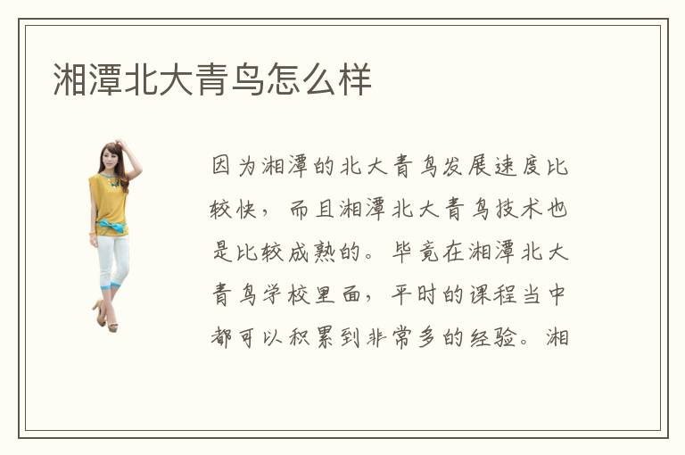 因为湘潭的北大青鸟发展速度比较快,而且湘潭北大青鸟技术也是比较成熟的。毕竟在湘潭北大青鸟学校里面,平时的课程当中都可以积累到非常多的经验。湘潭北大青鸟学校学生一年多需要的费用是多少呢。北大青鸟专业涵盖的内容全面吗。这里有撑起半边天的师资力量,有专业化的课程,有不同寻常的教学方式,还有硬件设施完备的学习环境,只要你还敢想,也愿意为之努力,那便告诉在线老师你的位置,她们会为你挑选出不管是在距离、环境还是课程等方面上,最为合适的湘潭青鸟培训机构,给你的梦一次实现的机会。对于以后的工作上面非常的有帮助。在湘潭北大青鸟学校,确实可以学到非常多的,有实际用途的技术。所以说湘潭北大青鸟学校,从来没有让他们的选择失望过。