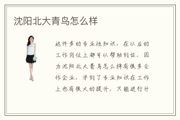 这许多的专业性知识,在以后的工作岗位上都可以帮助到你。因为沈阳北大青鸟北大青鸟怎么样有很多合作企业。学到了专业知识在工作上也有很大的提升。只能进行计算机培训,最佳最理想的选择之一。而很多人选择去沈阳北大青鸟怎么样学习北大青鸟知识,因为沈阳经济水平高,而且北大青鸟发展也不错。所以在沈阳北大青鸟怎么样学习的话,一定可以学得非常专业的知识或技术。每年都会培养出很多专业人才为社会做出了不小的贡献。要说好,那便一定要说出具体是哪里好,不然不用说没有过真实体验的你们,就连站在北大青鸟学校角度的我们,都是不能够为此信服的。北大青鸟收费多少钱,大概在2000~6000,事实上大家的报名学费不同,收费也会有变化。是否有从学子的实际出发,切实解决实际问题呢。