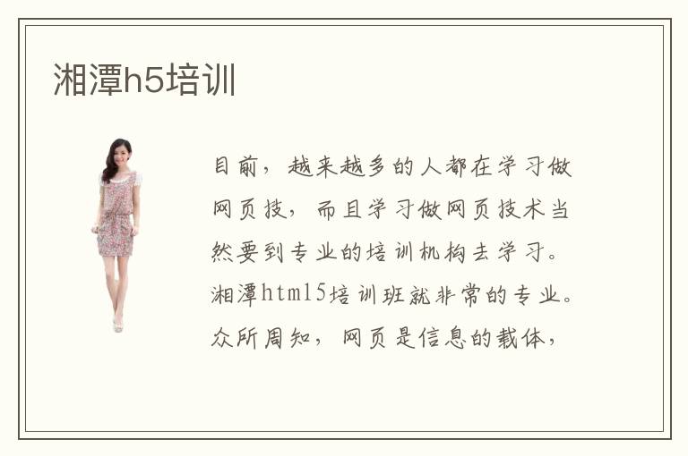 目前,越来越多的人都在学习做网页技,而且学习做网页技术当然要到专业的培训机构去学习。湘潭html5培训班就非常的专业。众所周知,网页是信息的载体,也是我们如今生活中平时获得信息的来源。而且湘潭html5培训培训机构,都有着非常好的教学水平。不知道什么叫做html5前端,html5前端的工作职能是什么。而湘潭h5培训培训班最多,非常的专业,非常的不错。而且在湘潭html5培训班学习。比起其他地方,在湘潭html5培训,技术会非常的,轻松,很快就可以掌握。所以到湘潭h5培训机构学习的话,是可以学到非常多的专业知识的。靠谱的有哪几所。生活在一个多样化的时代中,我们身边的很多东西都是多样化的。随着五花八门的客户端的开发,其背后的html5前端工程师也是越来越多。