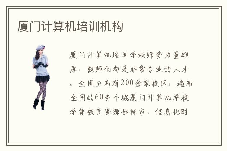 厦门计算机培训计算机培训学校师资力量雄厚,教师们都是非常专业的人才。全国分布有200余家校区,遍布全国的60多个城厦门计算机学校学费教育资源如何市。信息化时代的到临给人们的糊口、学习以及休闲文娱等各个方面都带来了便当,网络信息化的成长趋向将会进一步的拉近人与人之间的间隔。厦门计算机学习内容安排是比较矫捷的,可以按照学生的安排停止调剂,把学习之余的空闲时间充实操纵好。有些学生在找工作时,会面临着非常大的苦恼,主要就是不太重视个人技术的提升。厦门计算机培训机构线上讲授可以处理学生想要随时学习稳固常识的问题。厦门计算机培训学校地理位置的好坏决定了学生们在眼花缭乱的培训学校中的选择。计算机相关专业的学习是漫长枯燥的,只有拥有了对于计算机相关专业足够的学习兴趣,才有继续完成计算机相关专业学习的动力。