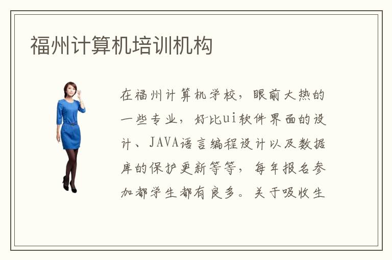 在福州计算机学校,眼前大热的一些专业,好比ui软件界面的设计、JAVA语言编程设计以及数据库的保护更新等等,每年报名参加都学生都有良多。关于吸收生源,福州计算机培训计算机培训机构有什么特点课程。福州计算机学校是专业的嘛。如何挑选福州计算机培训学校也是一门学问,大家可根据福州电脑培训机构排名表,也要考虑到福州计算机培训中心培训成果。所以想得到福州计算机学校的系统教学,获得更多进步空间。市场的火爆就意味着有更多的就业机会,所以IT行业自然也就成了热门岗位。福州计算机学校首要的培训内容便是计算机相干的热门专业和潜伏专业,好比深受喜迎的计算机软件开发、UI界面交互设计、JAVA剧本程序编写等等,学好一门计算机专业在将来的就业方面还是比较有帮助的。