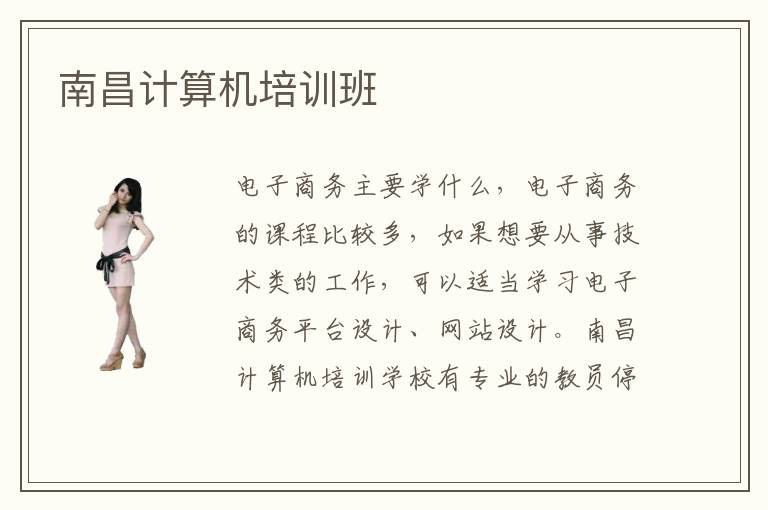 电子商务主要学什么,电子商务的课程比较多,如果想要从事技术类的工作,可以适当学习电子商务平台设计、网站设计。南昌计算机培训学校有专业的教员停止辅导培训,针对学生的特点,学校选择关适的专业教员、安排特点的专业课程,尽力让学生学习到最具适用性子的常识,让本身的计算机水平获得质的奔腾。同时,正因为南昌计算机培训技术含量高,南昌计算机培训机构也就有很多很多。轻轻松松就可以学到专业的知识。南昌计算机培训学校选择可以看一下学生的学习氛围以及学校的教学质量,就业水平等等。南昌计算机培训学校努力于为南昌市的信息化成长做进献,为互联网市场送去多量优异的技术人材。这些问题的产生都是来自于你对南昌计算机培训学校各方面的不了解。