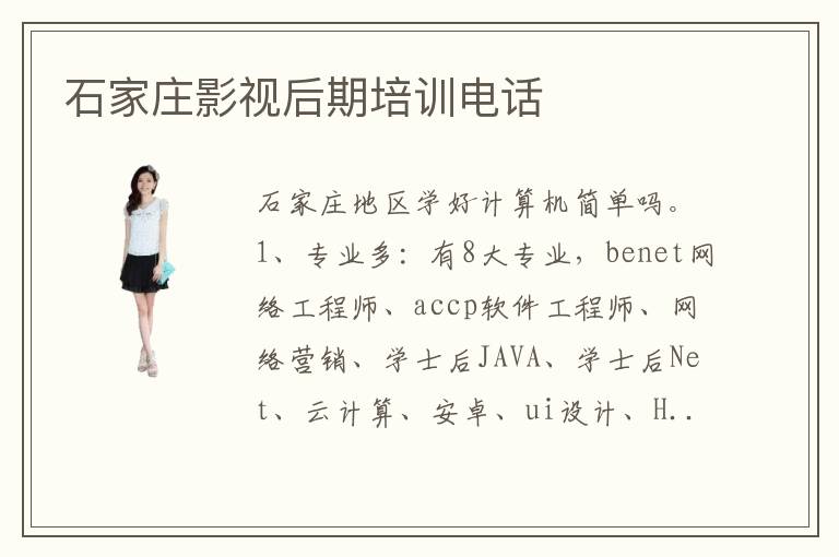 石家庄地区学好计算机简单吗。1、专业多:有8大专业,benet网络工程师、accp软件工程师、网络营销、学士后JAVA、学士后Net、云计算、安卓、ui设计、HTML5前端、IT发蒙星等;2、学校范围大:一个企业形式校区和大学生校园形式校区,学生可以按照的情况选择本身喜好校区学习;3、就业部:有特地的就业部分,担任学校前期就业,航天桥校区有上万家关作企业,学生结业由就业部分教员安排到关作企业上班;4、大学校园:独一一家有大学校园的校区,北京大学财产:北大资本;5、师资薄弱:教员都是企业返聘返来,在企业工作五年以上,有丰硕项眼经历,良多教员都介入Benet3。电脑作为人类二十一世纪所必不可少的,不仅是由于它所带给人类在生活上以及学习、工作方面的便利,更多是由于电脑编程技术的发展也不断推动了社会的进步。