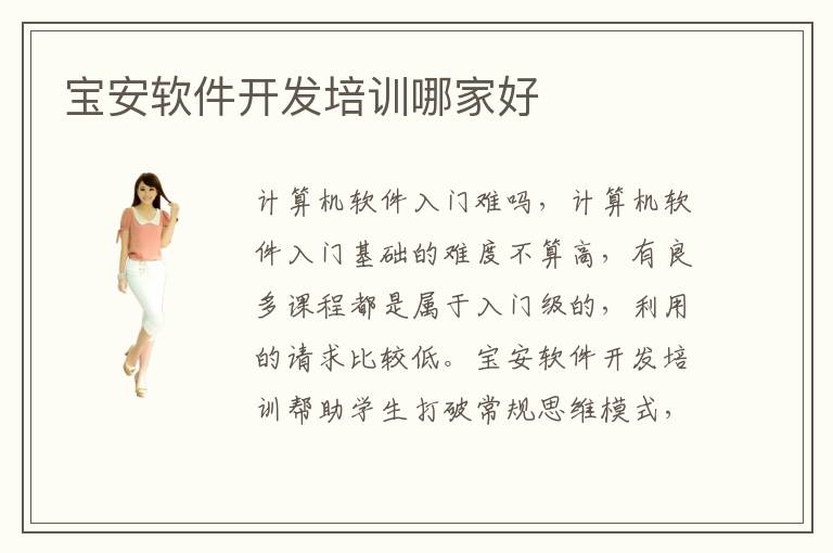 计算机软件入门难吗,计算机软件入门基础的难度不算高,有良多课程都是属于入门级的,利用的请求比较低。宝安软件开发培训帮助学生打破常规思维模式,让学生的创新科研能力得到提高和释放。宝安电脑培训中心每年接受的学生不计其数,培训价值也是很高的。要说现如今最具有发展前景的职业是什么呢。不少学生都会选择一对一辅导以及在线教学,因为这些辅导的方式效率更高,针对性比较强,不用受到空间限制,在家里或者是在学校都可以上课。但是需要知道,有些技术确实复杂,内容非常丰富,同学没有深入理解,也不知道怎样去学习,都有可能影响工作。宝安软件开发培训费用也许要4000~9500元,但这只是大概范围,没有固定的答案,大家可以先确定好课程,然后再找合适的项目。