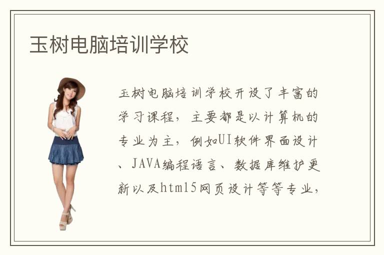 玉树电脑培训学校开设了丰富的学习课程,主要都是以计算机的专业为主,例如UI软件界面设计、JAVA编程语言、数据库维护更新以及html5网页设计等等专业,可以说当下热门的计算机专业应有尽有。玉树电脑培训学校每年都会有很多优秀的学子毕业,并且会在毕业以后找到一份合适的高薪职业,这些例子也就使得很多在玉树电脑培训学校学习的人有了想要学习专业技术的欲望。