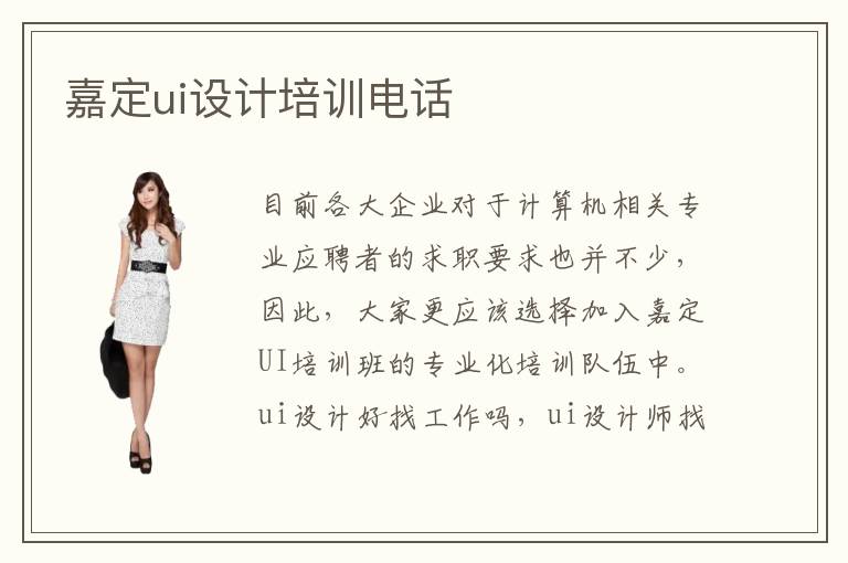 目前各大企业对于计算机相关专业应聘者的求职要求也并不少,因此,大家更应该选择加入嘉定UI培训班的专业化培训队伍中。ui设计好找工作吗,ui设计师找工作并不难,大家可以选优质的补习班,提高工作能力,从而争取更好的工作机遇。在嘉定UI培训班确实学到的都是专业性知识。不少同学都不认真学习计算机的核心技术,而且不懂如何应用,个人实力并不算强,无法完成工作任务,找工作也很艰难。嘉定区ui设计培训机构拥有的实践资源丰富吗。ui培训效率如何,ui培训机构的效率非常高,老师会针对学员的能力和基础,制定完善的设计规划,合理分配时间。嘉定UI培训机构开设了很多家,想要找到适合自己的学习环境,就需要进行嘉定UI培训机构的仔细挑选和不断对比,只有选择到适合自己的培训机构才能在短时间内最好的完成计算机UI设计专业的学习。