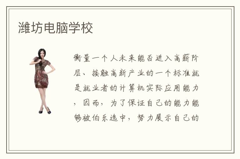 衡量一个人未来能否进入高薪阶层、接触高新产业的一个标准就是就业者的计算机实际应用能力,因而,为了保证自己的能力能够被伯乐选中,努力展示自己的闪光点是绝对的理念。潍坊电脑学校的培训模式是比较先进的,依据学生水平来调整。潍坊电脑培训机构口碑条件怎么样呢?潍坊电脑培训中心培训理念是什么呢?潍坊电脑培训中心有什么特殊之处嘛?