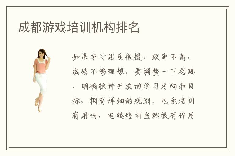 如果学习进度很慢,效率不高,成绩不够理想,要调整一下思路,明确软件开发的学习方向和目标,拥有详细的规划。电竞培训有用吗,电镜培训当然很有作用,不少同学在培训之前的能力都很糟糕,应用实力不够强,学习经验非常少,基本发挥不出实际效果。电竞培训学校口碑相当不错,很多学校的培训项目都特别清晰,有大量的课程安排,有利于开拓电竞专业的发展前景。不少学员都害怕游戏专业竞争越来越激烈,因此会想方设法提高专业水平,这时可以报名成都游戏培训学校。还有部分同学的应用水平太低,所以老师会安排游戏软件开发的应用课程。成都游戏培训班,就是专门培训程序员人才,的培训班。学生学习电竞专业的时候,应该要制定一个长远的学习规划,毕竟有些内容比较复杂,知识点非常丰富,要是学生期待短期内去掌握,往往难度会大大上升。