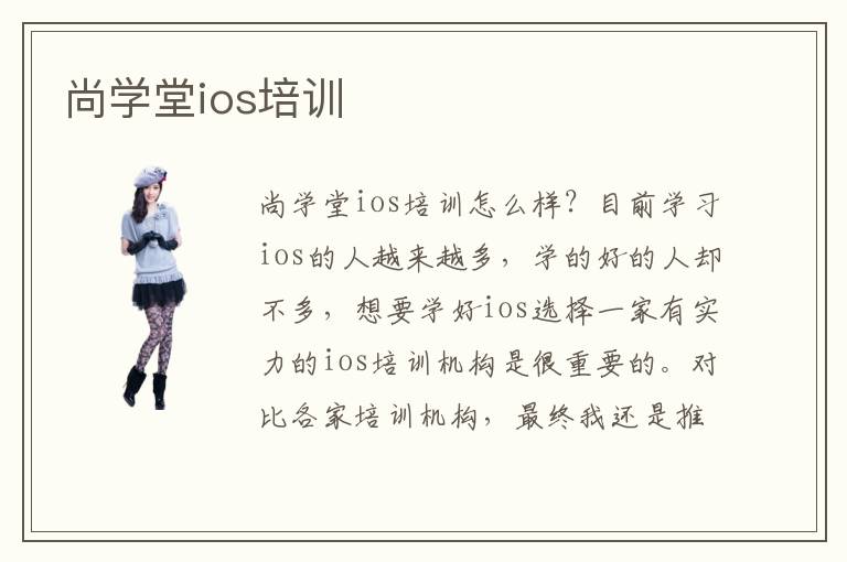 尚学堂ios培训怎么样?目前学习ios的人越来越多,学的好的人却不多,想要学好ios选择一家有实力的ios培训机构是很重要的。对比各家培训机构,最终我还是推荐大家尚学堂ios培训学校。尚学堂ios培训学校学习氛围好,老师授课认真知识点总结的很细,化繁为简的讲解方式能过让学生更快的接受。最重要的是尚学堂ios培训学校会与学员签一份就业协议,还有薪资保障,让学员放心学习。