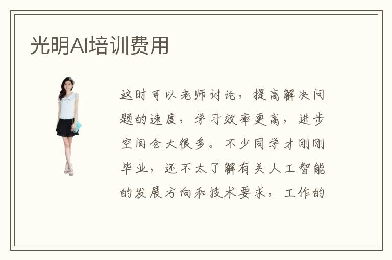 这时可以老师讨论,提高解决问题的速度,学习效率更高,进步空间会大很多。不少同学才刚刚毕业,还不太了解有关人工智能的发展方向和技术要求,工作的优势很不明显,往往会处于被动局面,不知道如何与其他优秀的同事竞争。在家里也可以完成ai入门教学课程。光明人工智能培训班哪家好,人工智能教育机构师资力量如何,多数老师的专业水准都相当高,因为辅导班会非常严格,确保每一个老师都拥有多年经验,而且教学实力很强,教学成果有保障。光明人工智能培训机构会充分了解学生的基本情况,包括学习的能力、学习方法、学习习惯、学习兴趣等等,然后制定个性化课程。光明人工智能培训机构价目表大概区间范围在4000到14,000元,当然也要取决于不同机构的能力以及收费标准、技术成果等等。