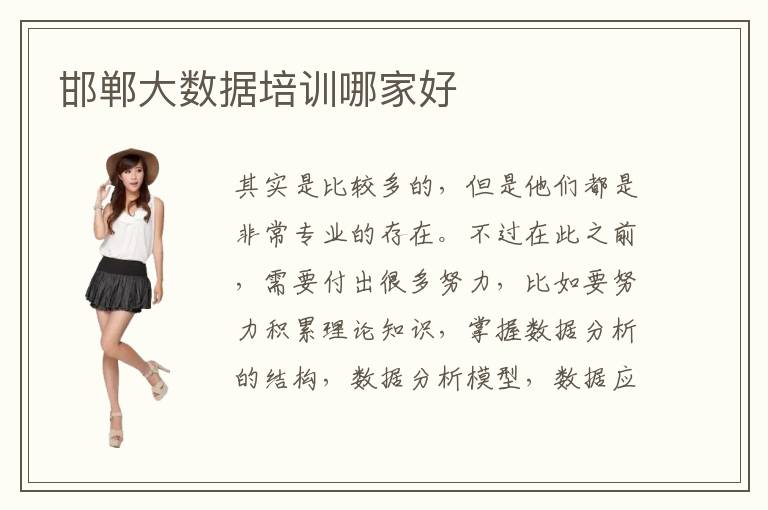 其实是比较多的,但是他们都是非常专业的存在。不过在此之前,需要付出很多努力,比如要努力积累理论知识,掌握数据分析的结构,数据分析模型,数据应用领域等等课程。邯郸大数据培训大数据培训机构技术难度都不是太大,所以大家除了要考虑难度之外,还要多关注教学的方式,学生的教学成果,多考虑教学环境和师资力量。另外,为了得到比较大的进步,需要与老师详细沟通,了解以后可能会面对的问题,然后提前进行解决。这个过程需要结合大数据相关的需求,实现软件系统以及功能模块的开发。许多大数据专业课程都是跟应用相关,有的同学只看到一些书本的内容,而且只关注浅层知识,不知如何应用,更不了解如何将所学的内容与工作结合,导致成绩比较普通。如果觉得自己的技术不够高端,一直都处于中上游的阶段,那么可以在老师的帮助之后制定更多高端的技术项目,掌握之后可以成为行业内非常优秀的人才。