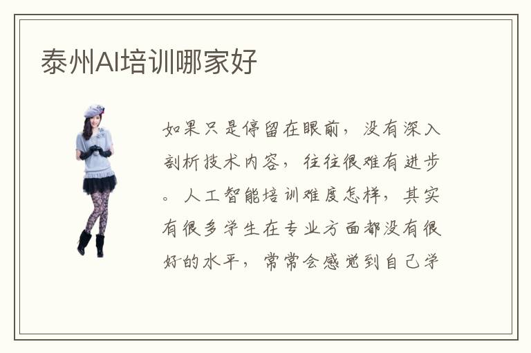 如果只是停留在眼前,没有深入剖析技术内容,往往很难有进步。人工智能培训难度怎样,其实有很多学生在专业方面都没有很好的水平,常常会感觉到自己学习的难度太大,但是透过人工智能的学习,往往可以降低难度,也对整体的人工智能知识结构有更清晰的认识。不过学生也不必忧虑,毕竟还有很多专业的辅导机构,可以帮助大家克服各种人工智能专业的学习障碍,选择更好的技术辅导方案,达到更高的水平。有的同窗感受人工智能的课程太难,跟不下行业的成长转变,可是辅导机构会帮助人人加速学习的历程,梳理学习的方向,从而具有更好的前进。泰州ai培训学校会加快学习步伐,介绍众多课程,这样同学每个阶段都能了解自己要学的是什么,也能知道自己学习到哪些阶段,然后针对这些现状进行不断的弥补。