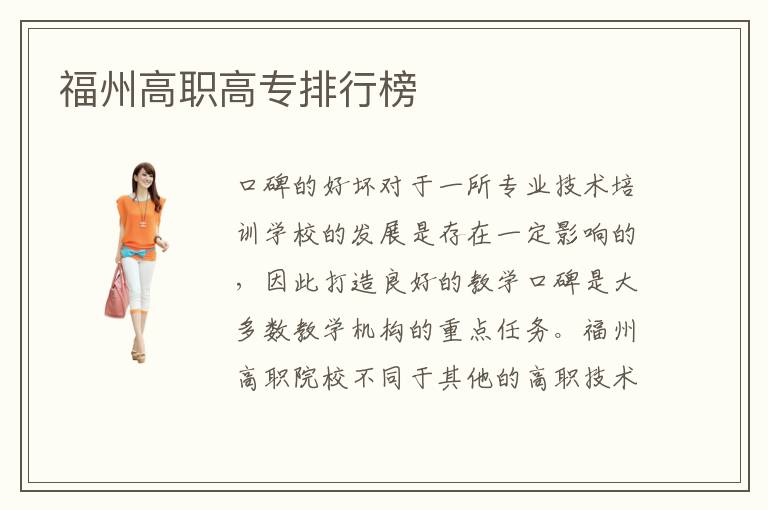 口碑的好坏对于一所专业技术培训学校的发展是存在一定影响的,因此打造良好的教学口碑是大多数教学机构的重点任务。福州高职院校不同于其他的高职技术培训学校,在教学方式方面拥有自己独特的教学体系,首先会对学员们想要学习的专业技术进行院校班级的分类,这样的分类会让课程教学效率更高,避免了教学进度以及学习时间上的浪费。毕业后方便就业。福州高职院校开设了丰富多样的专业课程,也成功培养了很多不同专业的优秀技术型人才,是福州市学生想要学习专业技术的首要选择。福州高职院校的专业课程教学团队都是拥有丰富工作经验的精英,因此能提供给学员们更多实际性的指导。福州高职院校是怎么样的,一般是有丰富的经验,老师的水平也比较高,专业设备更有保障。