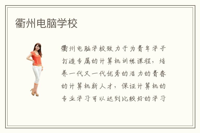 衢州电脑学校致力于为青年学子打造专属的计算机训练课程,培养一代又一代优秀的活力的青春的计算机新人才,保证计算机的专业学习可以达到比较好的学习状态。衢州电脑培训专业类目又有什么呢?衢州电脑培训班安排了高质量的老师和高质量的课程,满足大多数学生的需要。衢州计算机培训班课程安排是比较人性化的,可以按照学生的自主意愿进行专业指导。