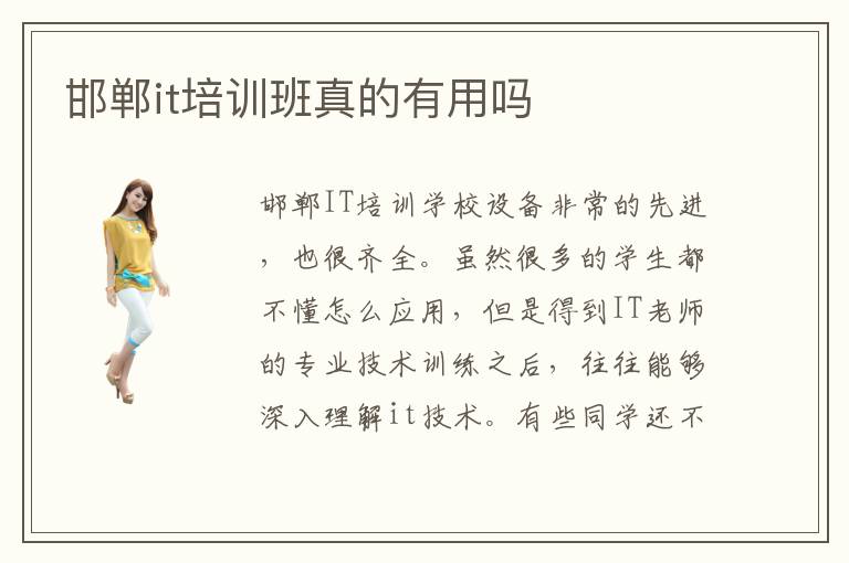 邯郸IT培训学校设备非常的先进,也很齐全。虽然很多的学生都不懂怎么应用,但是得到IT老师的专业技术训练之后,往往能够深入理解it技术。有些同学还不知道工作要求,也不知道自己将来要学习哪些内容,即便投入很长时间,但似乎看不到效果,从而产生许多负面情绪。邯郸IT培训费用大概范围应人而异,要看课程的难度和课程内容。邯郸it培训学校到底应该如何选择呢。那么,你知道邯郸IT培训机构哪家好吗。it培训速度快不快,IT培训机构的教学速度比较快,鼓励学生完成课程作业,充分利用课堂上面的课程,优化专业技术。当然不管行业发展怎么样,个人也要努力学习专业的内容,优化个人竞争能力,成为行业的佼佼者,才能拥有更大的发展舞台和表现机会。