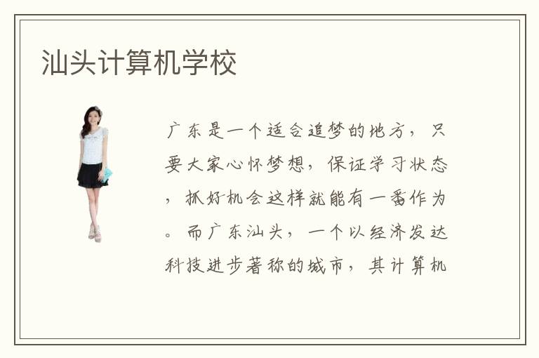 广东是一个适合追梦的地方,只要大家心怀梦想,保证学习状态,抓好机会这样就能有一番作为。而广东汕头,一个以经济发达科技进步著称的城市,其计算机实力教学水平也是不错的。汕头计算机学校创办以来,培养大批优秀学生,为计算机教育事业领头。汕头计算机学校专业程度是比较高的,汕头电脑培训班教学质量也比较高,适合学生发现自我优缺点进而更好学习。