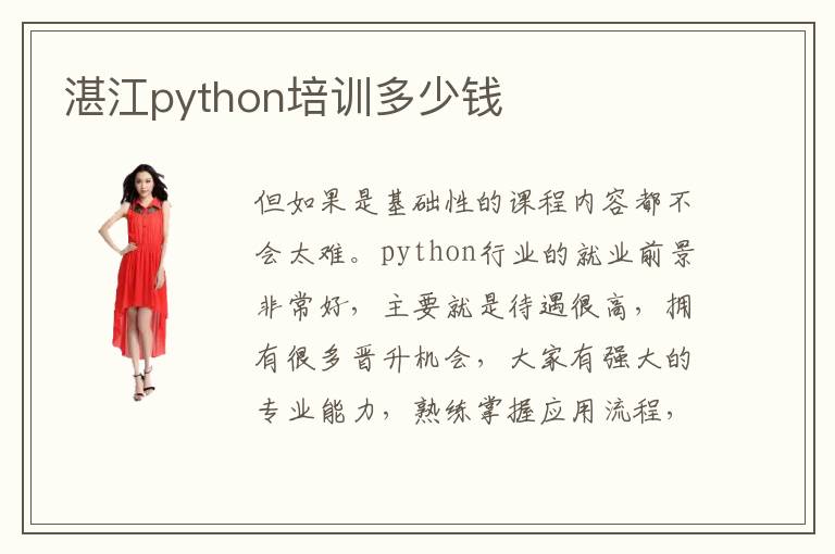 但如果是基础性的课程内容都不会太难。python行业的就业前景非常好,主要就是待遇很高,拥有很多晋升机会,大家有强大的专业能力,熟练掌握应用流程,完成重要的任务,工作会有很多进步。普通的学生往往会通过专业技术的书籍掌握这些基础的知识,但如果没有老师引导,也没有尝试过应用的训练,学习的效果一般都不会很好。比如报名辅导方式,大家可以先判断一下湛江python培训python培训哪家好,然后做好适当的决定。但是有部分学校可能就没有这方面的优势和水准,技术资源有限,教学能力不足,导致学习的成果并不能让学生得到满意的结果,因此大家要针对自己的学习情况,来选择恰当的机构,发挥出更好的学习培训优势。所以学生只要按部就班去掌握老师培训的课程,都会有很多进步。