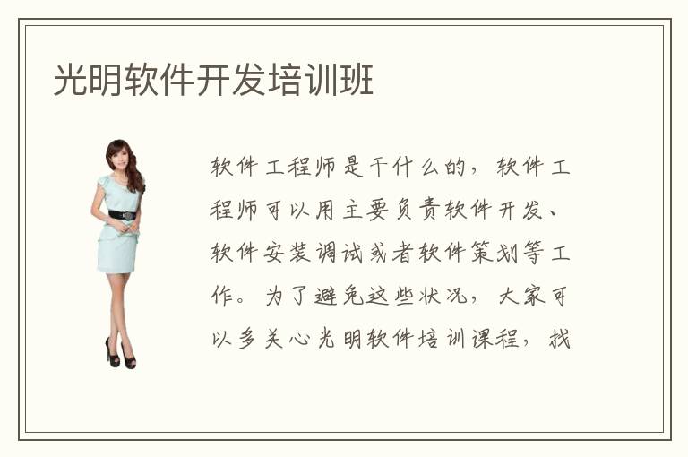 软件工程师是干什么的,软件工程师可以用主要负责软件开发、软件安装调试或者软件策划等工作。为了避免这些状况,大家可以多关心光明软件培训课程,找到软件培训实力比较强的学习机构,由软件课程老师来监督和训练,也许在软件应用方面会有更加不错的成绩,对将来的基础巩固也有很好的效果。因此同学要积累知识,还要尝试各种应用项目。光明电脑培训班学习价值高,有意义。软件测试项目确实有点多,要求逐渐变得严格起来,不少学生的目标都非常不严谨,态度也不太认真,学习过程不太主动,进步的效果不明显。虽然说现在的培训机构很多,但是不见得每一个软件培训班都有帮助,所以要尽可能选择知名度高口碑不错的辅导机构。对于能力比较差的同学,可以考虑光明软件培训班,老师可以全程负责,为学生安排课程,明确软件专业的学习目标和方向。