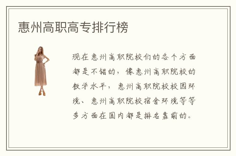 现在惠州高职院校们的各个方面都是不错的,像惠州高职院校的教学水平,惠州高职院校校园环境、惠州高职院校宿舍环境等等多方面在国内都是排名靠前的。大家不妨了解一下贵惠州职院校,这里对于职业技术的学习还是比较靠谱的。那么,惠州高职院校的专业培训可靠吗。关肥高职院校具有国内首屈一指的专业培训团队,在如许的讲授团队率领下必然可以培育良多优异的技术型人材,是以也就使得关肥高职院校在校学生都可以享用到更专业的课程培训,也大大挑高了学生们的学习效力。而惠州高职院校被越来越多的人知晓,也因此非常的受欢迎。学校里都有专门的餐厅,宿舍公寓,教学楼,实验基地。惠州高职有没有难度,高职院校的难度也比较小,所以不要太紧张。