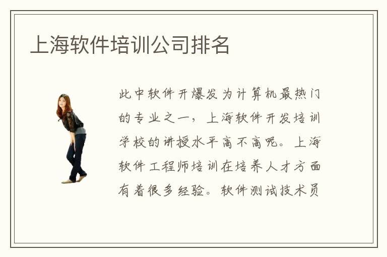 此中软件开爆发为计算机最热门的专业之一,上海软件开发培训学校的讲授水平高不高呢。上海软件工程师培训在培养人才方面有着很多经验。软件测试技术员找工作容易吗,找工作很简单,但是需要有比较强的能力。如果同学成绩不理想,或者学习能力不强,都可以考虑这样的教育机构,达到更好的提升效果。我想这是很多想要学习软件开发设计专业却又不敢去学习的同学所担心的问题,别担心上海软件开发培训机构开设了免费的专业试学一周的活动项目,通过这次活动会对软件开发设计专业有了更深刻的了解。软件学校的教学方法主要有一对一教学、网络指导教学、小班教学等等。上海软件开发培训注重对于学员们基础理论与实践技术的双重训练,在上海软件开发培训中心与各位软件开发设计专业的同学一起交流探讨,有助于技术的学成。